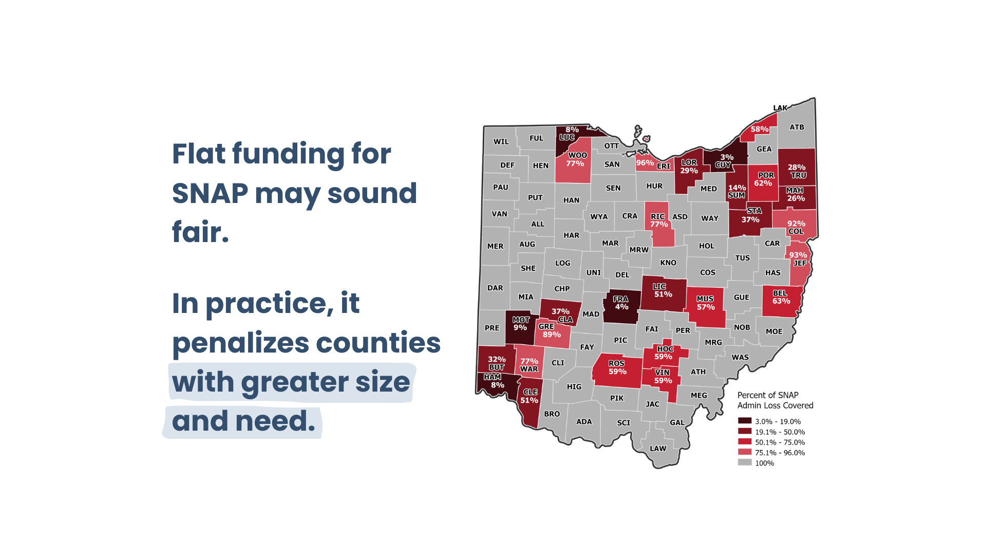 We make data digestible. Community Solutions produces fact sheets highlighting demographic, health, and social indicators for communities around Ohio. We examine data indicators within poverty, education, employment, income, health outcomes, and public benefit programs. Policymakers and direct service organizations use this resource to better understand the communities they serve and advocate for improved health and social conditions around the state.